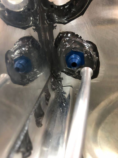 | This was the final sealant application on the inside of the tanks. None is needed on the flare fitting - it is supposed to be fuel tight! |